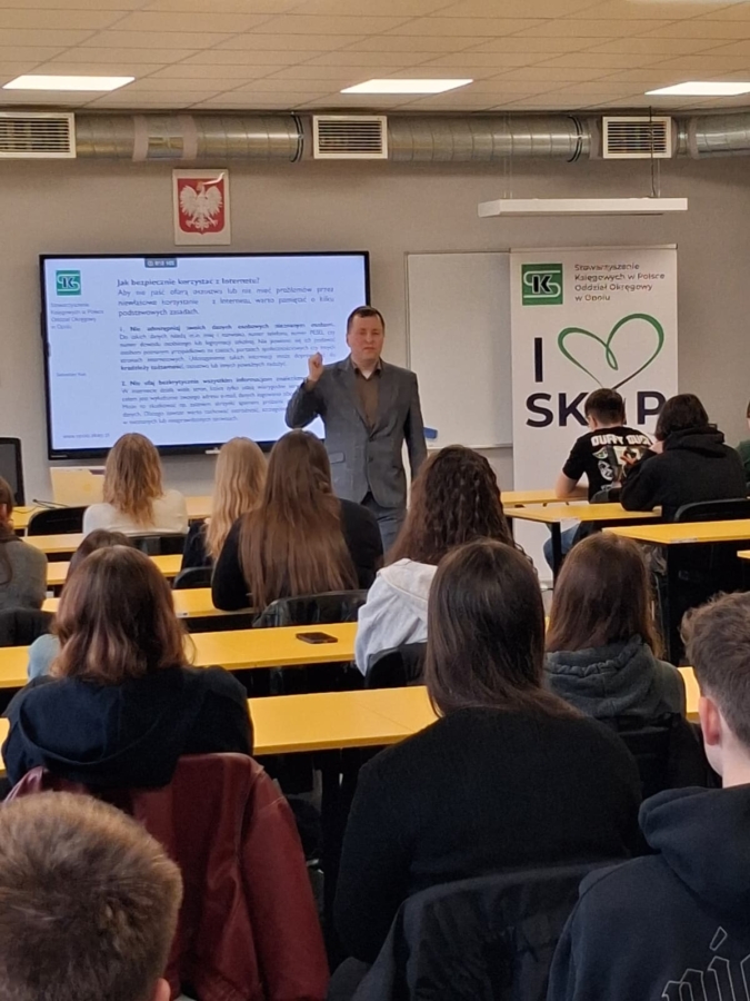 🎓8 kwietnia 2026 r. uczniowie klas technikum rachunkowości z BCU Ekonomia i rachunkowość - Strzelce Opolskie wzięli udział w zajęciach prowadzonych przez Pana Sebastiana Kusia – Prezesa Oddziału Okręgowego w Opolu Stowarzyszenia Księgowych w Polsce.
