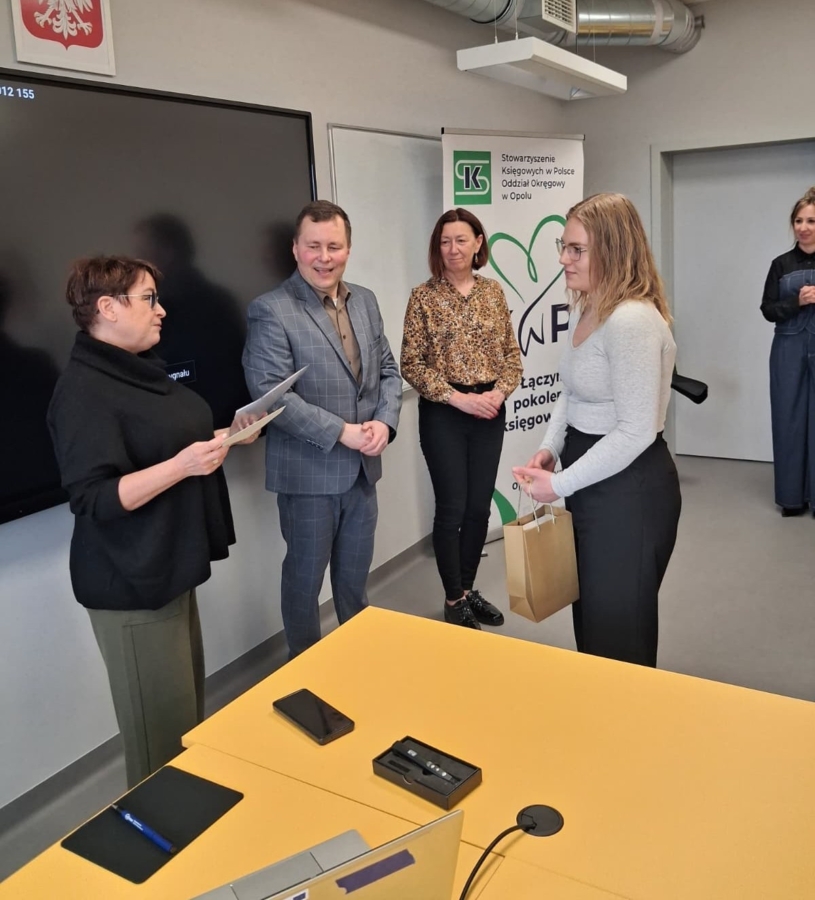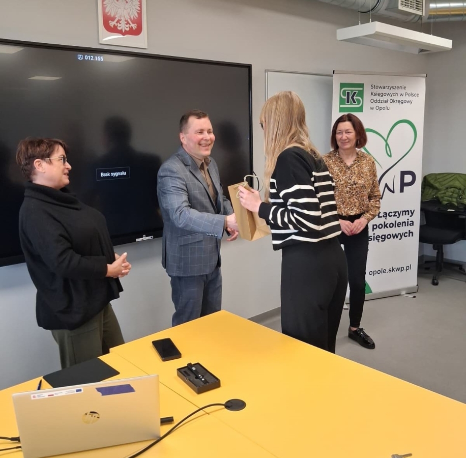 📜Podczas wydarzenia nie zabrakło również miłych akcentów – nagrodzone zostały uczennice, które wyróżniły się swoimi osiągnięciami podczas Ogólnopolskiej Olimpiady „Rachunkowość w biznesie” na etapie okręgowym w Opolu.